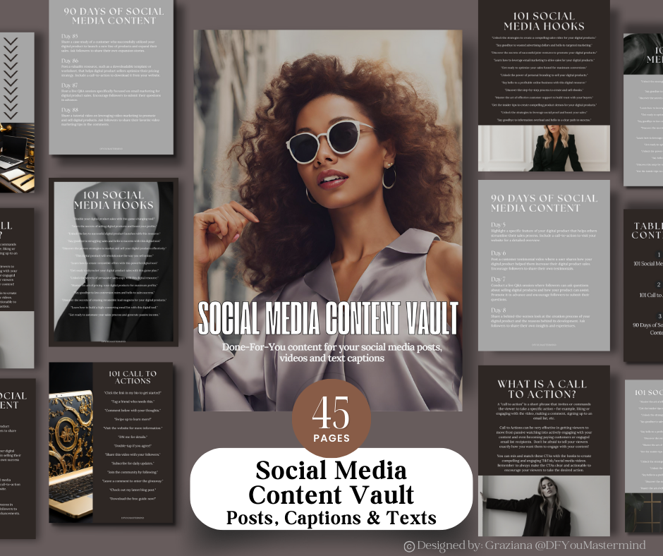 This done-for-you eBook is about promoting the digital products you are selling on social media. It breaks down hooks and CTAs (Call To Action) and why they are important for your social media posts, plus examples to use!